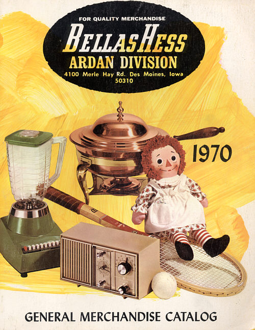 Click on this 1970 Bellas Hess Ardan cover to go to a page featuring a supersize version of the department collage shown above, plus two shots of vintage TVs they used to sell (thanks again, Marty!)
