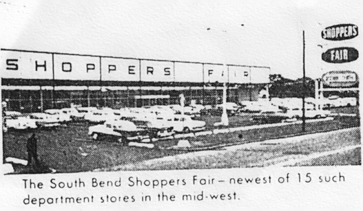 My mom bought me an Etch A Sketch , and green soldiers , and a Yogi Bear coloring book from THAT very Shopper's Fair. What 's exciting for me is that i've been back to South Bend looking for the store , only to find that it had been destroyed. YOURS was the first picture i've seen of it in 40 years. AND it was taken at a time when one of those cars in the picture, could very well have been my family's! What GREAT memories it evoked!! IF anyone else has any pics of the old Shopper's Fair , or Potawatamie Park , or any 1960's South Bend pictures, PLEASE forward them to me in JPG format . My address is [email protected].
