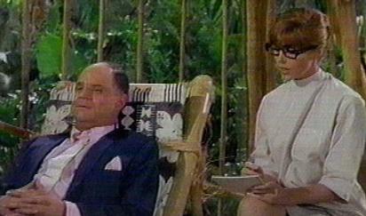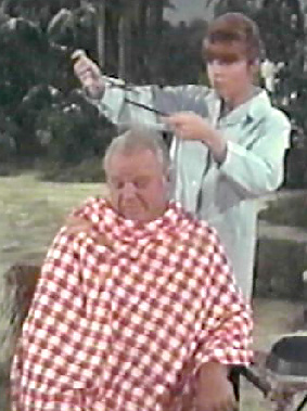 | Before the actual storyline gets underway--about a shortage of citrus fruits which the Professor warns will lead to a vitamin C deficiency and eventually do in the castaways--this episode opens with the Skipper getting a haircut from Ginger, who somehow volunteered to be his barber. |