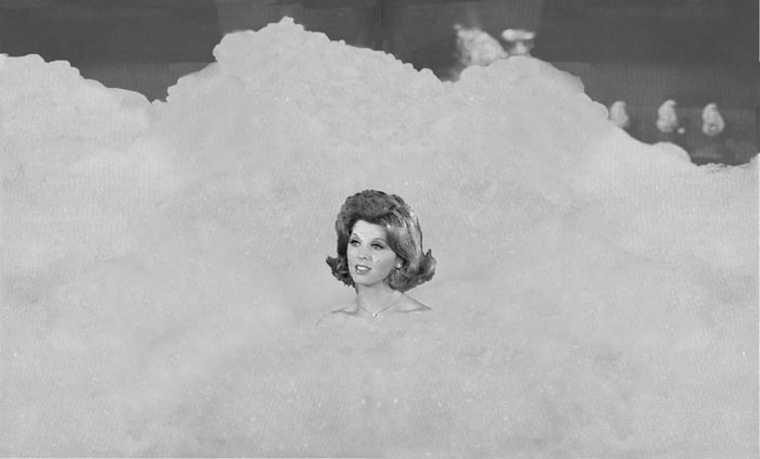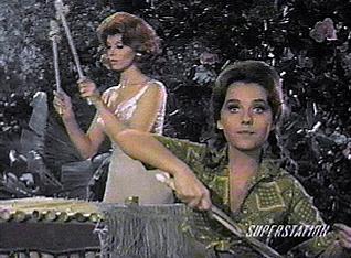 A final observation...As all regular viewers of Gilligan's Island know, many episodes give us a look at what the castaways dream about at night, particularly Gilligan (whose dreams are more like nightmares). We've also witnessed the dreams of the Howells, Mary Ann, the Skipper, even the Professor. But what about Ginger? We never get to look into what she dreams about, not in any one of the 98 original episodes. So what would a Hollywood glamour girl like Ginger dream about in the swinging mid-'60s when concerns seemed fewer? Here's one possibility... |